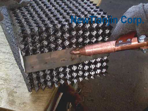 天津市新天进科技开发有限公司(简称新天进公司)主要从事分离工程中的工艺流程及传质设备(填料塔、板式塔、除雾器及其它塔内件)的研究、开发、设计、制造、安装、调试和服务,以及精细化学品、催化剂的研制和开发。为用户提供各种化工分离过程的优化解决方案。 新天进公司采用自动化流水线生产各种规格型号的金属波纹填料。 采用数控冲床、剪板机、折弯机等标准化设备加工各种塔板、液体分布器、填料支承、填料压板、液体收集器、除雾器等各种塔内件。